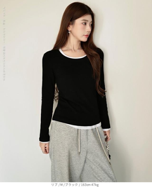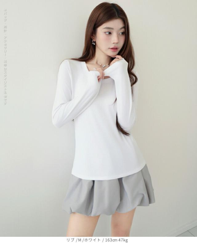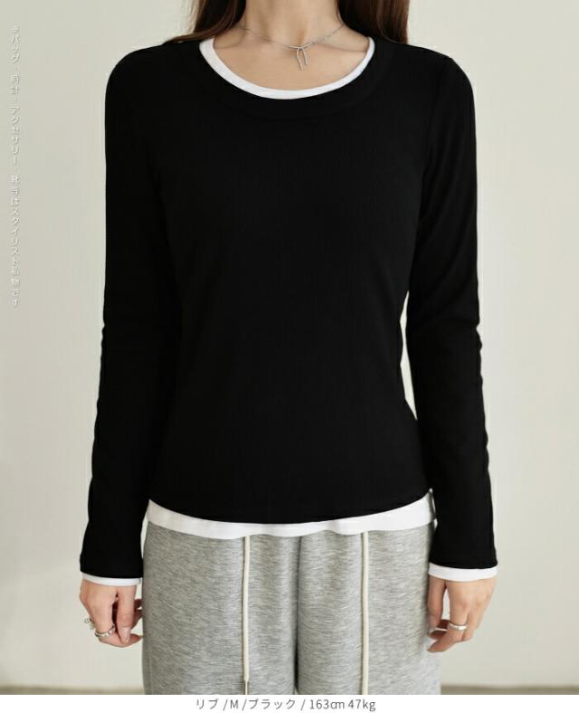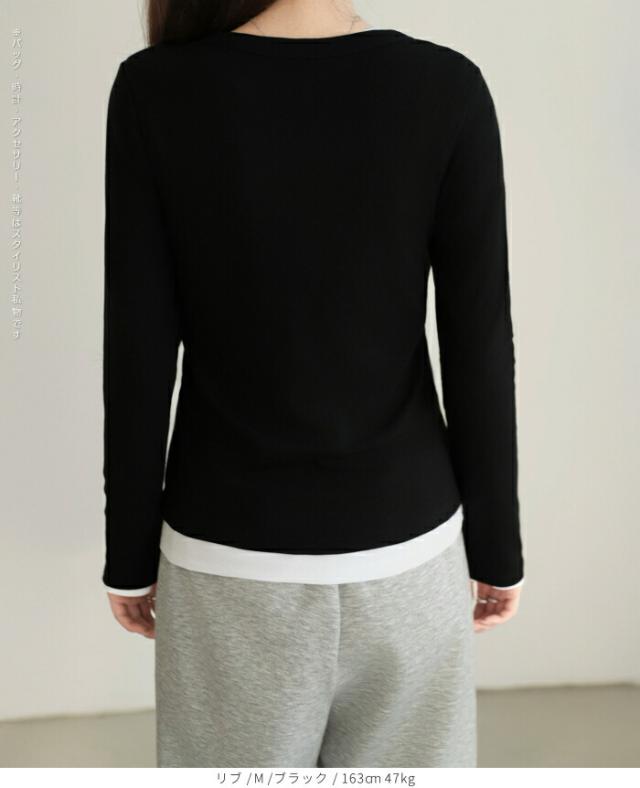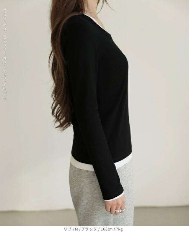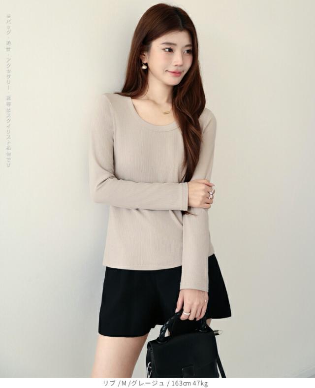 【 Uネックリブカットソー 】