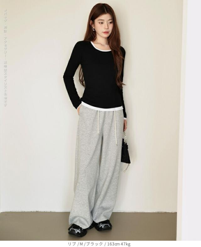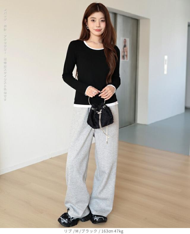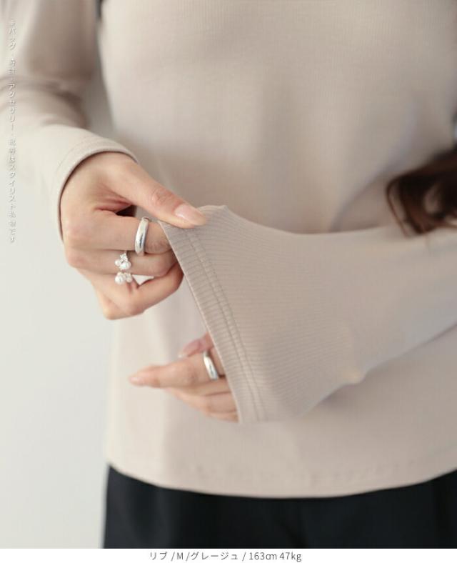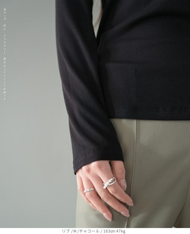 細畝リブが縦ラインを強調し、自然にすっきり見え。