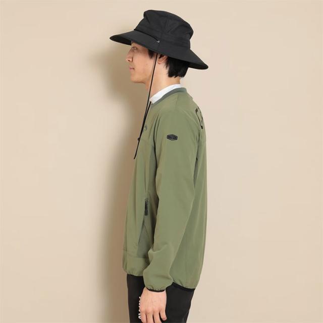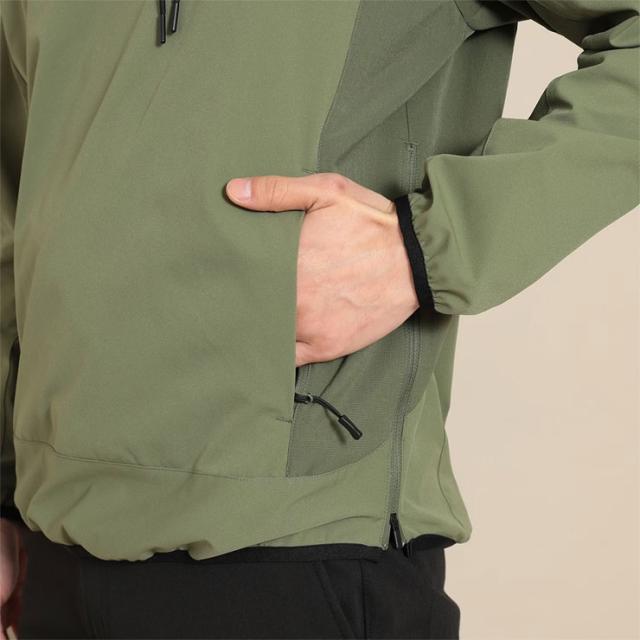 Tシャツ感覚で着ていただきたいプルオーバーアウター。インナーはモックネックに限らず、シャツとのコーディネートなど、レイヤードスタイルを楽しむことができます。脇部分はドットエアー素材を使用しており、異素材組み合わせのハイブリッド感を楽しめます。左脇がファスナー開きになっているので脱ぎ着がしやすいのも嬉しいポイントです。