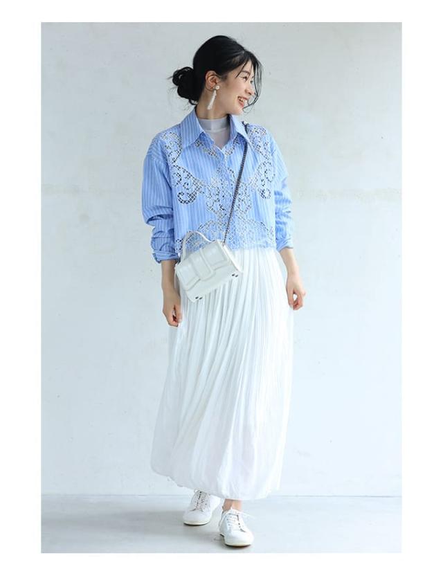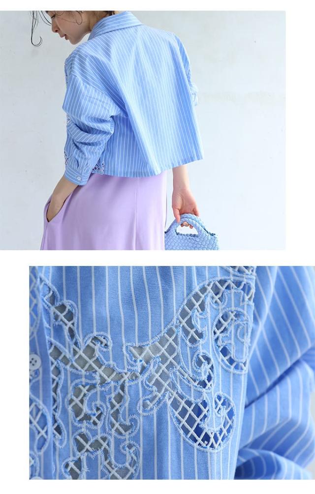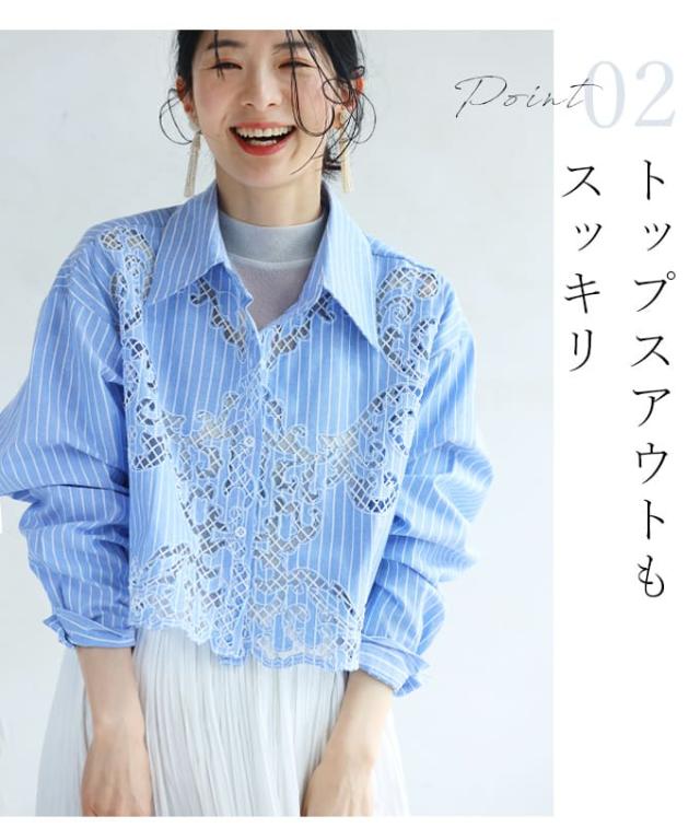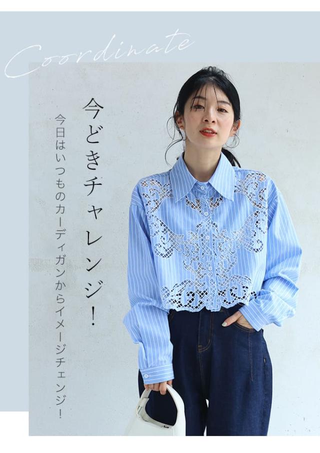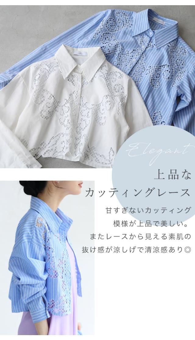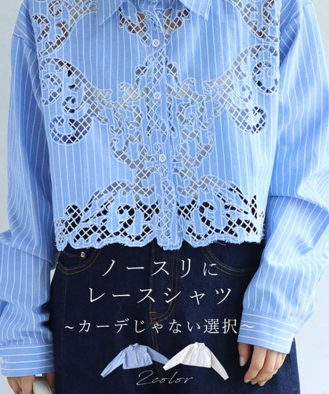 再入荷9月5日 ノースリにレースシャツ 〜カーデじゃない選択〜 トップス シャツ レディース ファッション 秋服 春服 着回し 重ね着 ショート丈 パンチングレース cawaii w60515ps キレイめ シンプル ミセス 30代 40代 50代