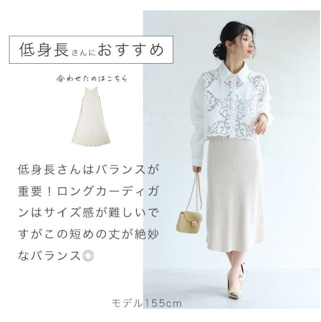 - 旅行用の羽織りを探していて、気になっていたのですが、購入して良かったです。 背が低いのですが、ワンピースの下に着ても、着丈が短くてもたつかず、オシャレ! 肌寒さもなく、しっかり目の生地ですが、レースの...