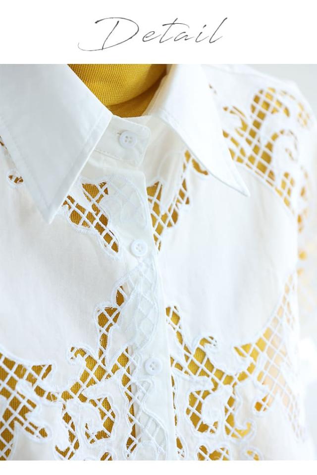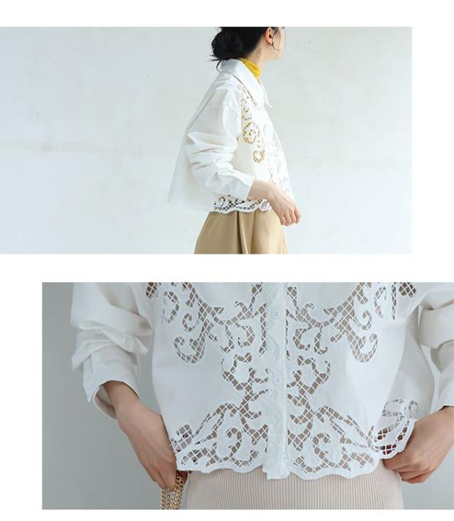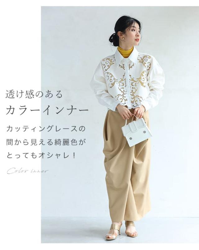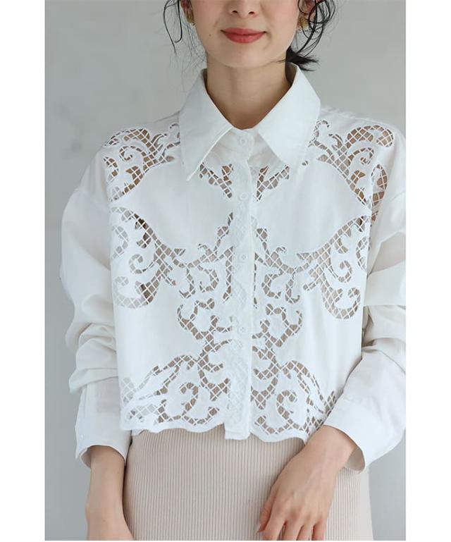 w60515ps 新作 新着 再入荷 CAWAII FRENCHPAVE フレンチパヴェ エレガント ベーシック カジュアル 可愛い かわいい カワイイ おしゃれ オシャレ お洒落 個性 個性的 定番 ベーシック 大人かわいい 大人可愛い 上品 女性らしい デザイン スタンダード ナチュラル きれいめ キレイめ シンプル フェミニン レディース レディースファッション 大人 ママ ミセス 30代 40代 50代 60代 パンチング レース 模様 浮かぶ ショート丈 シャツ トップス 長袖 長そで ロング袖 S M L 2L 3L フリーサイズ フリー ゆったり 春 秋 冬 秋服 秋物 冬服 冬物 春服 春物 重ね着 レイヤード ホワイト 白 白色 レース レース服 日常着 普段着 日常使い おでかけ 旅行 家族旅行 女子会