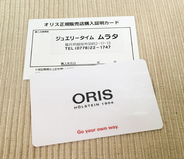 | ORIS(オリス)正規3年保証 正規ギャランティーカード付属 マイオリス登録で3年保証 また アフタメンテナンスの関しては 当店へ着払いでお送りください 保証内の修理に関しては当店経由で 代理店 オリスジャパンに送ります 有償修理に関しても会員価格で受けることができます 当店がその後のメンテナンスに関して 責任を持って対応たせていただきます |