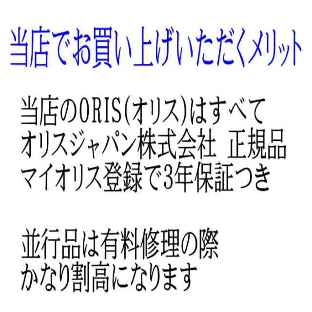 新品オリスジャパン正規品 メーカー保証2年 マイオリスに登録して保証期間延長!! 3年の安心保証です 保証書 取扱説明書 専用箱 すべて完備です アフターメンテもお任せください |
