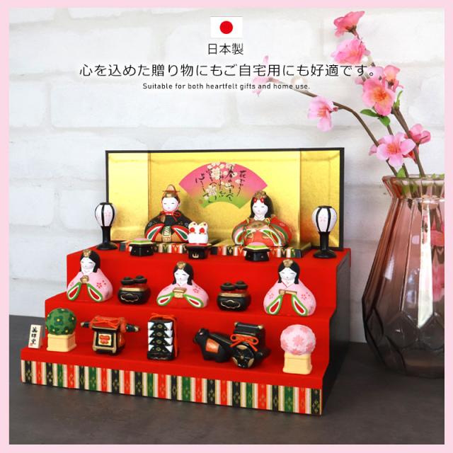 雛人形 コンパクト 錦彩華みやび雛 三段飾り 薬師窯 ひな人形 雛祭 三人官女 5人 飾り インテリア 縁起物 置物 陶磁器 陶器 ひな祭り 飾り 屏風付き 人気 雛飾り 初節句 かわいい おひなさま お雛様 おしゃれ マンション