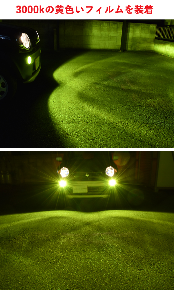 イエロー黄色いフィルム装着時(約3000k)約2200lm(1基あたり)