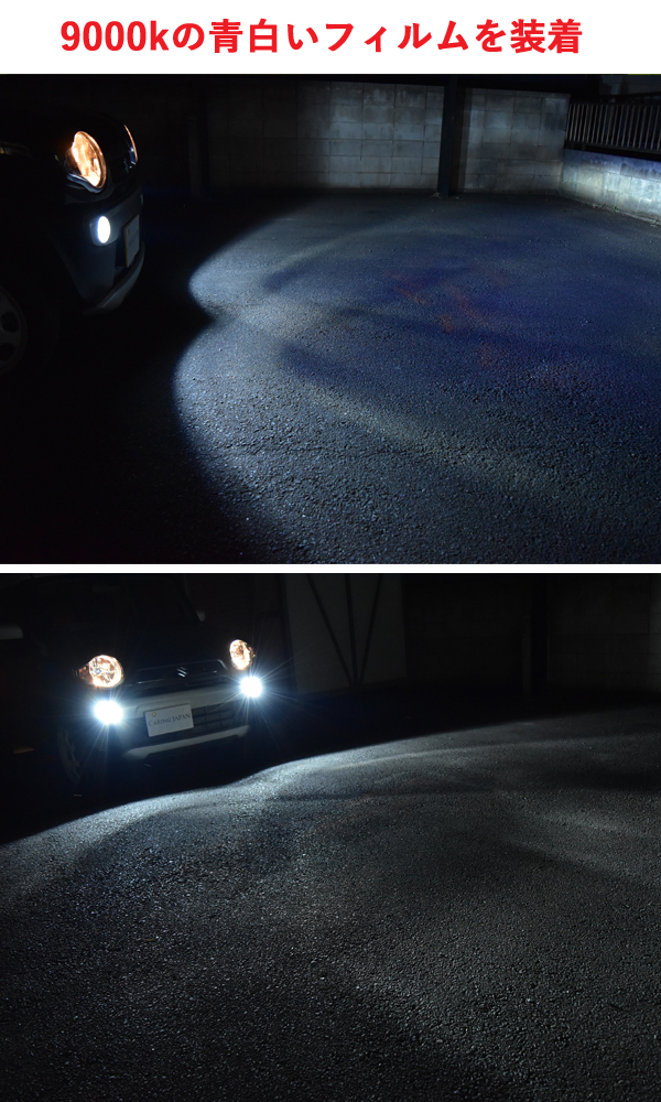 ホワイト青白いフィルム装着時(約9000k):約2500lm一基あたり)