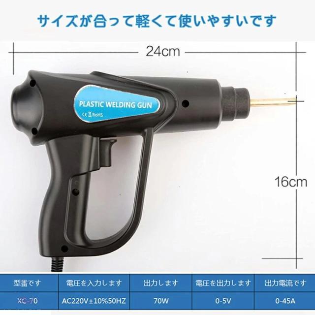 プラスチック溶接機 カーバンパー修理キット 70W 車のバンパー修理溶接ツール LED照明 収納箱付き 4種類フラット 溶接機ガン PSE認証済み