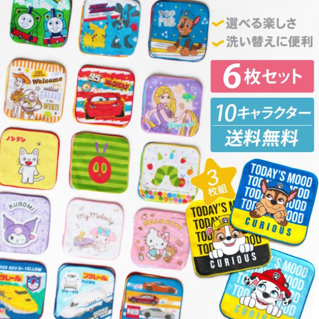 ミニハンカチ 6枚セット 送料無料 ハンドタオル カーズ トーマス ポケモン ピカチュウ トイ・ストーリー ディズニー キティ パウパトロール 入園 保育園 幼稚園ハンカチ セット キャラクタータオル ハンカチ ポイント消化