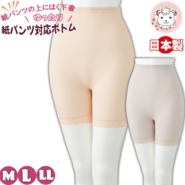 紙パンツ対応 3分丈ボトム オーバーパンツ 大きめマチ付 M/L/LL | レディース 綿100% 三分丈 スパッツ レギンス ひざ上 ボトム 日本製 3分丈 インナーパンツ
