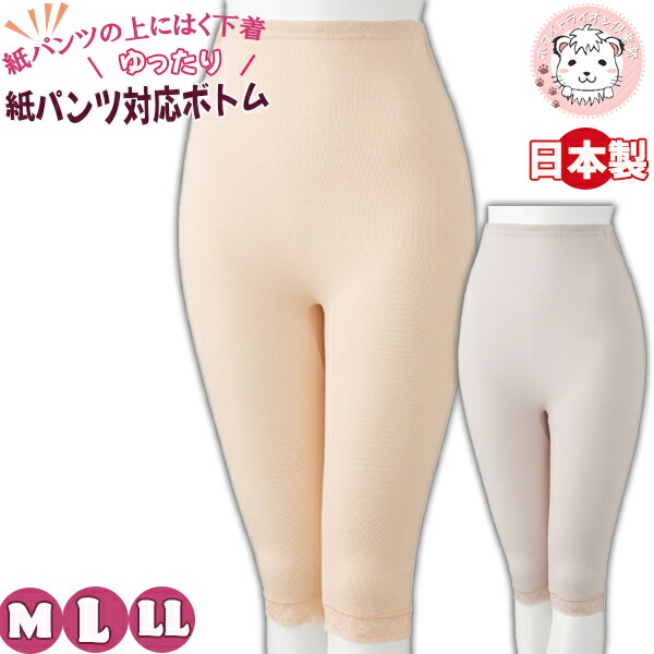 紙パンツ対応 7分丈ボトム オーバーパンツ 大きめマチ付 M/L/LL | レディース 綿100% 七分丈 スパッツ レギンス ひざ下 ボトム 日本製 7分丈 インナーパンツ