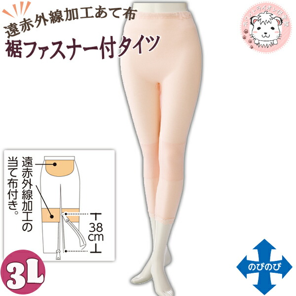 裾ファスナー付き タイツ レディース 9分丈 遠赤外線加工 スラックス下 大きいサイズ 3L 婦人用 スパッツ レギンス ボトム 九分丈 ウエストゴム交換可