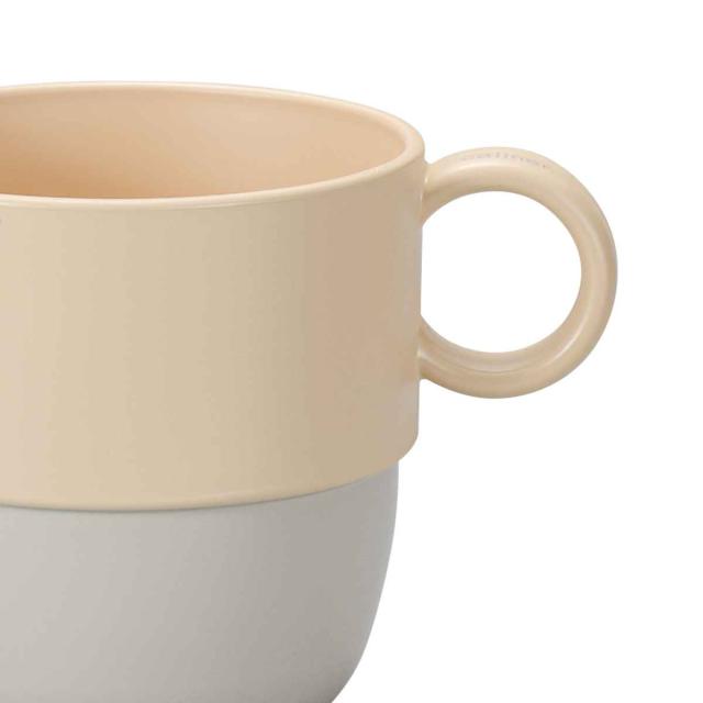 軽くて割れにくい樹脂製のマグカップです。内側には抗菌加工がほどこされ、お子様用の食器としても安心です。ナチュラルなカラーも食卓に馴染みやすく、毎日のおうちご飯で活躍します。