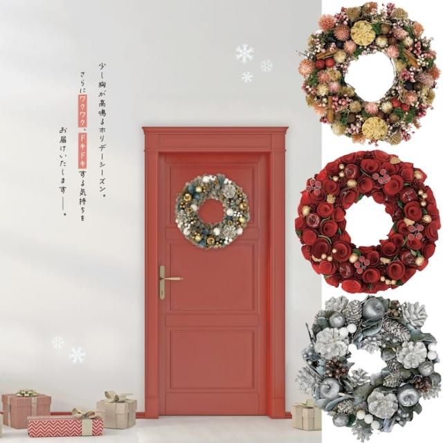 クリスマスの装飾をはじめ、どのシーズンでも飾れるデザインのリースも販売しております。
