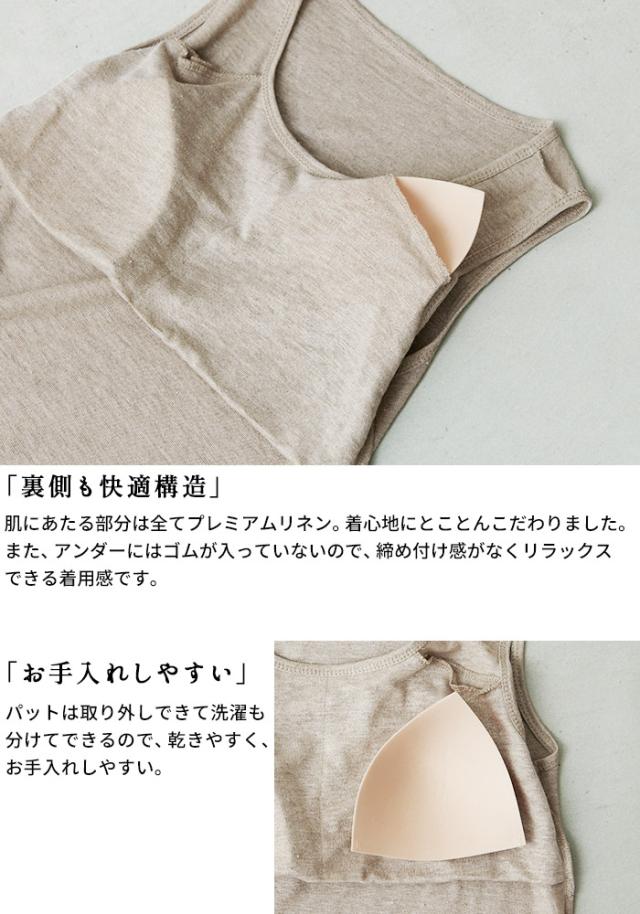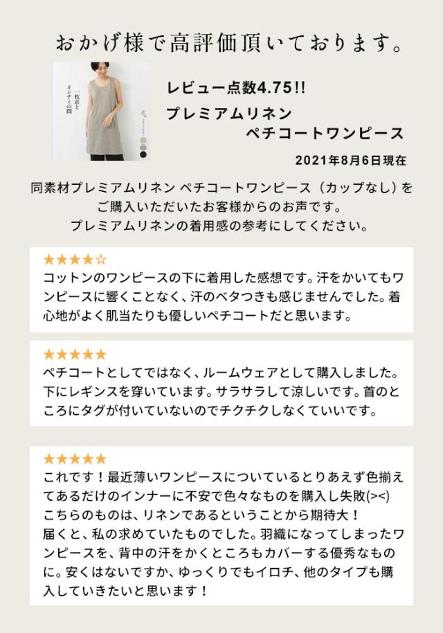 プレミアムリネン100% カップ付 ペチコート ワンピース 日本製 / ペチコート ワンピース インナー カップ付き アンダーゴムなし 麻100 パッド付 涼しい 透け防止 肌着 速乾 抗菌 天然素材 秋 下着