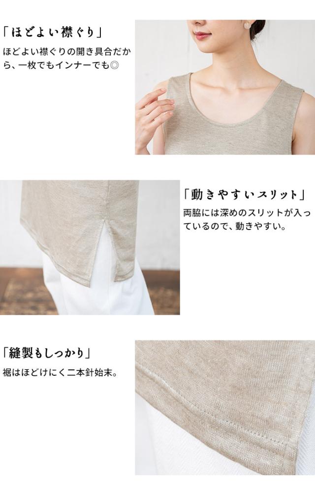 特徴 快適な着心地が人気のプレミアムリネン®ペチコートワンピースにブラカップを付けました。一枚着とインナーの間として着られる一枚二役の便利なワンピースです。暑い季節のブラまわりのムレや汗もこれで解消。カップ付きって前が二重、三重になっていて案外乾きにくかったりしますが、リネンの速乾性でそれも解決!また、カップ下にゴムがなく、締め付け感なく着られ、思いっきりリラックスできる超快適な一枚です。