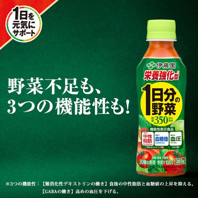 【機能性表示食品】伊藤園 栄養強化型 1日分の野菜 PET 265g 48本 (24本×2ケース) (送料無料) 伊藤園 機能性表示食品 1日分の野菜 食物繊維 GABA 難消化性デキストリン