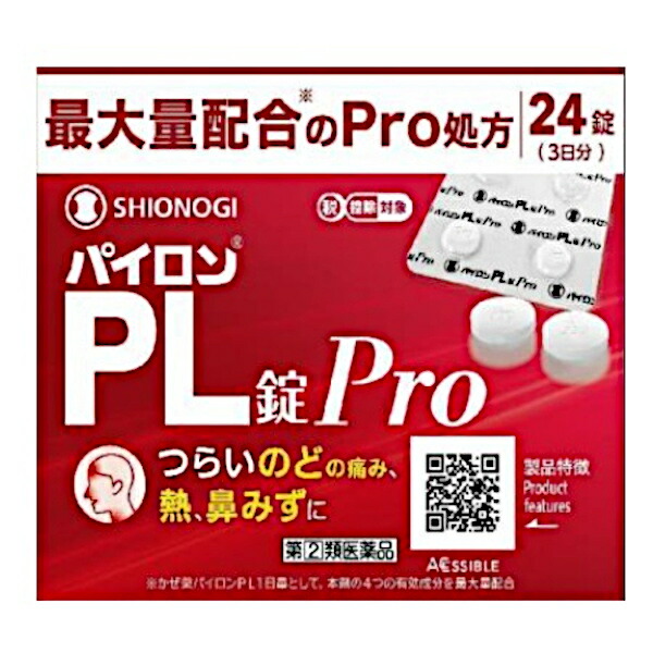 製品の特徴 パイロンPL錠Proは,解熱鎮痛成分であるサリチルアミドとアセトアミノフェン,抗ヒスタミン成分であるプロメタジンメチレンジサリチル酸塩,痛みをおさえるはたらきを助ける無水カフェインの4つの有効成分の作用により,「のどの痛み」「発熱」「鼻みず」などのかぜの諸症状にすぐれた効果を発揮する非ピリン系のかぜ薬です。