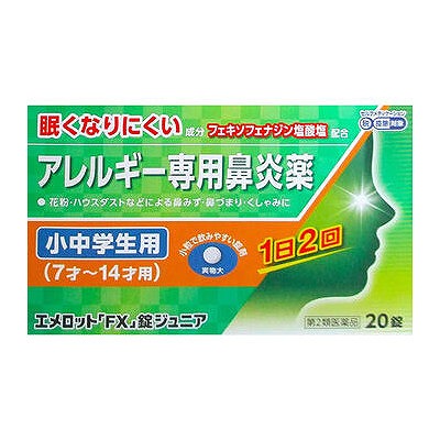 ●エメロット「FX」錠ジュニアは、こども(7才〜14才)用のアレルギー専用鼻炎薬です。