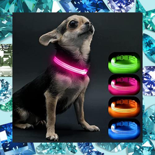 Visinite LED光る首輪, 小型犬 散歩 ライト USB充電式, 子犬や猫に適した調節可能な長さ, 軽量, 暗い犬 首輪 光る300m先から目視可能, 犬