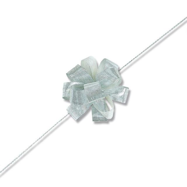 リボンを切って両端からリボンの真中の紐を引くときれいな花が出来るギフトリボンです。