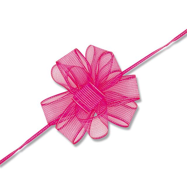 リボンを切って両端からリボンの真中の紐を引くときれいな花が出来ます。