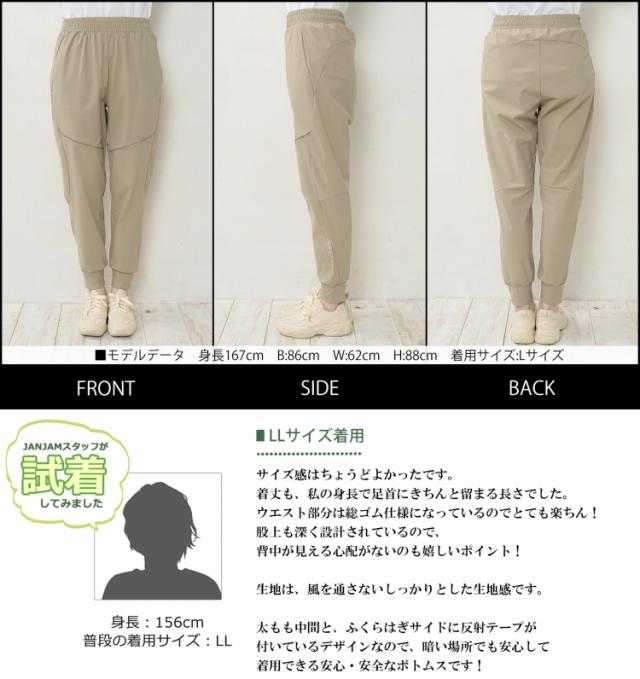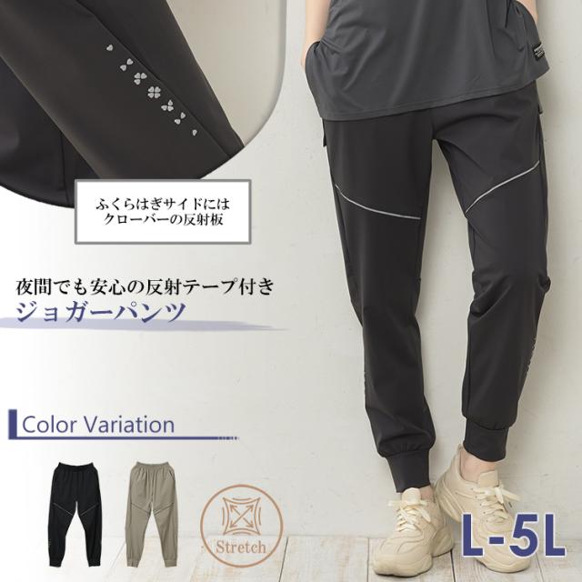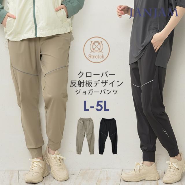 大きいサイズ レディース ジョガーパンツ ロング丈 メール便送料無料 ウエストゴム クローバー反射材 スポーツウェア ボトムス L/LL/3L/4L/5L ゆったりサイズ ぽっちゃり女子 プラスサイズ
