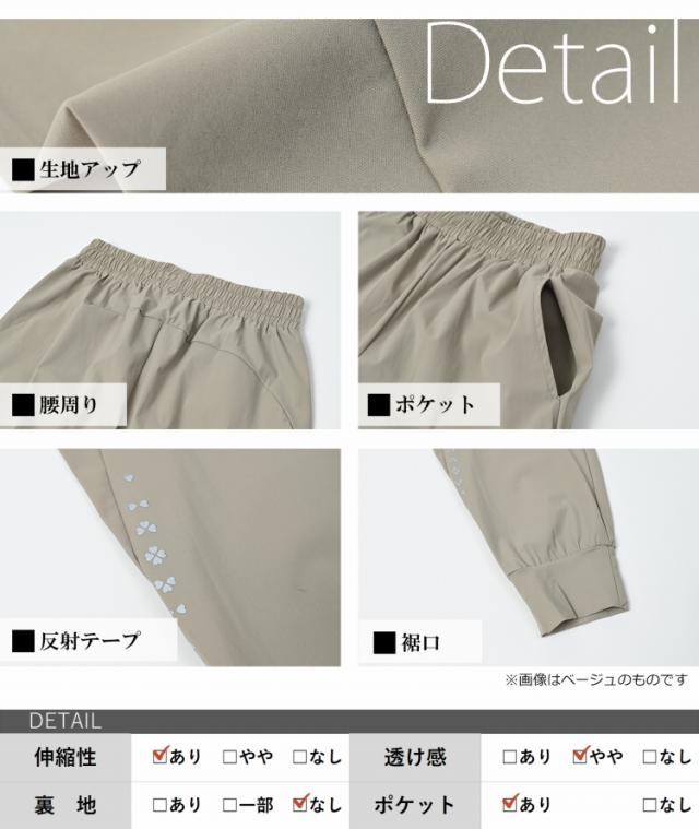 クローバーモチーフの反射材がポイント! ジョガーパンツ。 伸縮性があり動きやすく さらりと心地よい肌触りの速乾生地。 普段使いやスポーツなど 幅広いシーンで活躍するボトムスです。 |