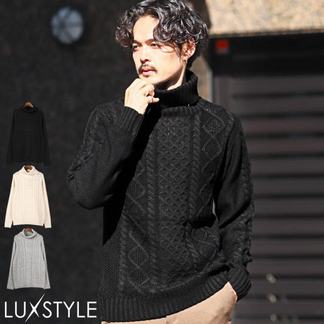 ニット セーター メンズ タートルネック ハイネック ケーブル編み アクリルニット【アクリルケーブルタートルネックニット】 aa-2834