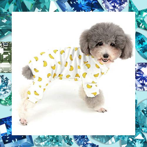 ZUNEA 犬 つなぎ パジャマ 春夏 ロンパース 小型犬 洋服 おしゃれ かわいい バナナ柄 ドッグウエア Tシャツ 部屋着 寝間着 抜け毛防止 XXL
