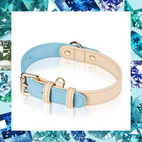 AKAGIICHI 犬 首輪 革 犬の首輪 小型、中型、大型犬用首輪 本革製 犬用ベーシック首輪 調節可能 ペットの首輪(サイズS,M,L) (M, ブル