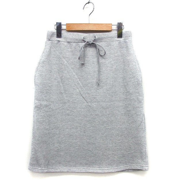 【中古】イーアールジー e.r.g 台形 スカート 膝丈 シンプル ウエスト紐 綿混 M グレー 灰 /HT28 レディース