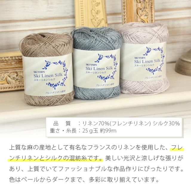 毛糸 スキー毛糸 リネンシルク 日本製 サマーヤーン 夏糸 リネン シルク かぎ針 棒針 手編み 編み物 手芸 ハンドメイド 手作り 帽子 マフラー スヌード ストール セーター ベスト