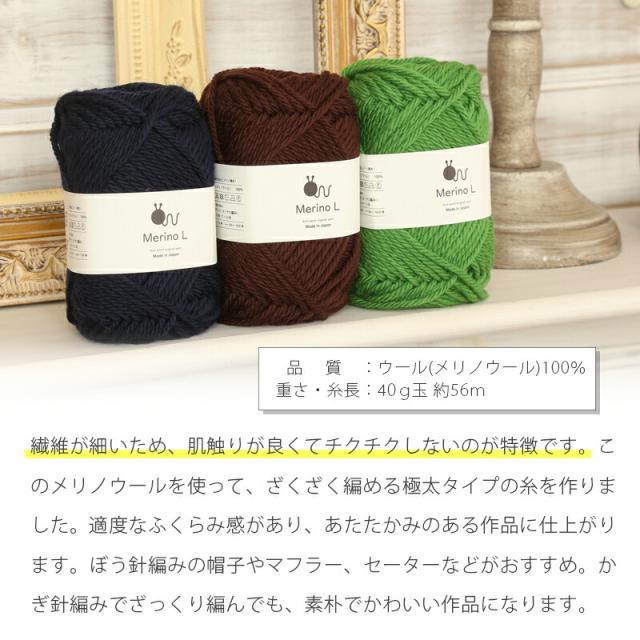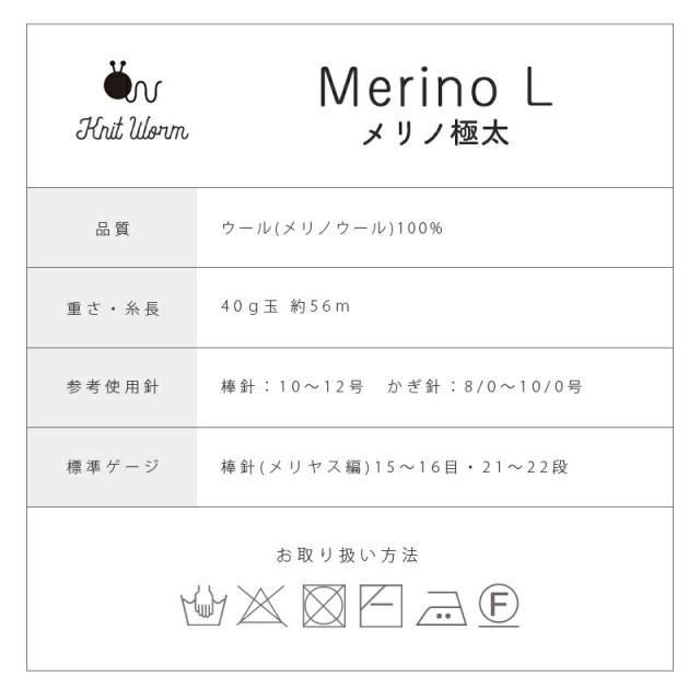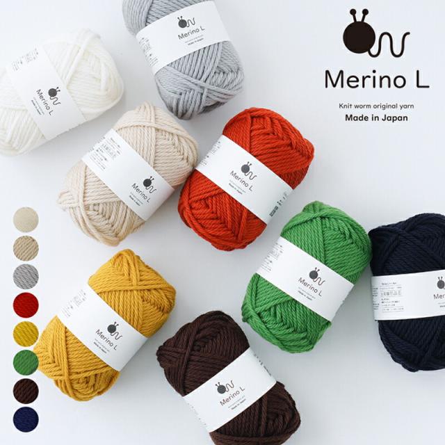 毛糸 ニットワーム MerinoL メリノ極太 メリノL 日本製 ウール 秋冬毛糸 かぎ針 棒針 ニット 手編み 編み物 レディース メンズ 手芸 ハンドメイド 手作り 帽子 ベスト セーター ストール ショール