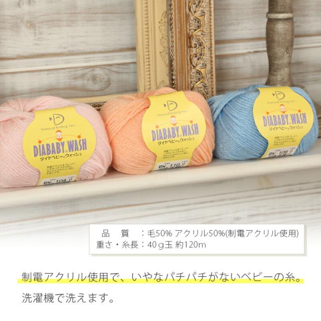 毛糸 並太 ダイヤモンド毛糸 ダイヤベビーウォッシュ 日本製 ウール アクリル 静電防止 かぎ針 棒針 ニット 手編み 編み物 赤ちゃん ベビー 子供 キッズ ハンドメイド 手作り 帽子 マフラー スヌード ストール セーター ベスト おくるみ