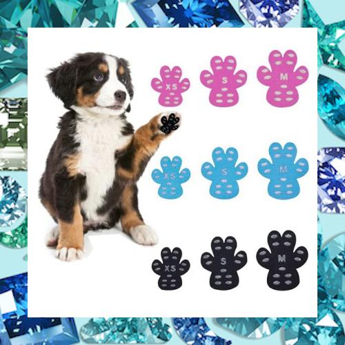 【仕 様】 入り数:4枚(全足分)*4セット、 全部16枚 。3色7サイズ ● サイズXS:2.7*3cm S:3.3*4cm M:3.8*4.5cm L:4.3*5cm XL:5*5.7cm 2XL:6.3*7cm 3XL:7.8*8.6cm 優れた素材: ペットの足のプロテクターは、高品質の通気性のある精製綿の布と非毒性で低刺激性の接着剤でできており、類似の製品よりも耐久性があり、頑丈です。