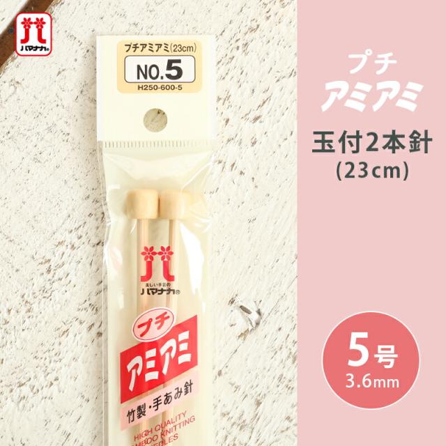 ハマナカ プチアミアミ 玉付2本針 5号 23cm 棒針 竹製 手あみ針 毛糸 編み針 編み物用品 手編み 編み物 ハンドメイド