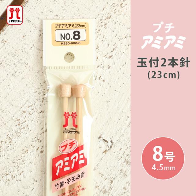 ハマナカ プチアミアミ 玉付2本針 8号 23cm 棒針 竹製 手あみ針 毛糸 編み針 編み物用品 手編み 編み物 ハンドメイド