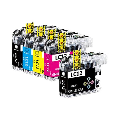 ◆商品名:【SMILE CAT】Brother用 互換インク LC12 LC12-4PK(BK/C/M/Y)4色セット+LC12BK ブラック 追加1本 全計5本セット 増量ライプ ICチップ付