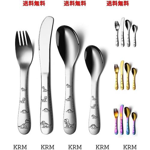 Evanda カトラリーセット 子供用 4点セット ナイフ フォーク スプーン 18-0ステンレス鋼 食洗器対応 幼児 食器セット キャンプ キッチン用品