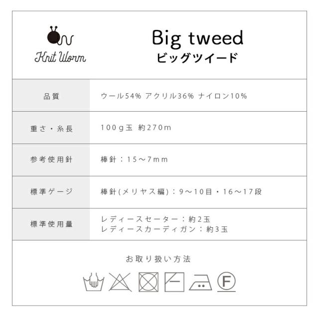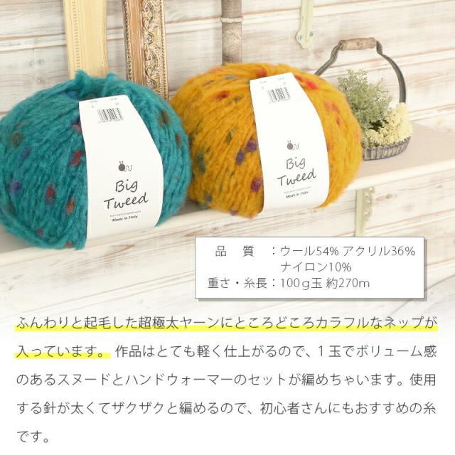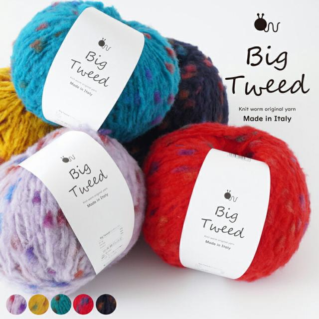 毛糸 超極太 ニットワーム ビッグツィード イタリア製 ウール アクリル 秋冬毛糸 かぎ針 棒針 ニット 手編み 編み物 レディース 手芸 ハンドメイド 手作り 帽子 ベスト セーター ストール ショール