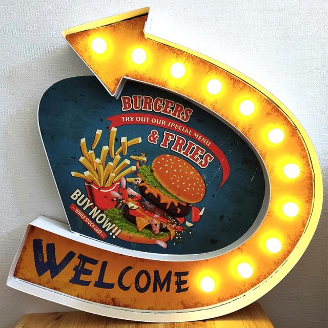 電飾看板 アメリカン クラシック LED Sign ハンバーガー ポテト 可愛い BURGERS & FRIES レトロ 壁掛け 照明 雑貨 サインライト