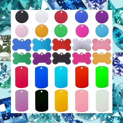 特徴: 1.好きなデザインでオリジナルタグが作れる無地アルミタグ30枚セットです。 2. かわいいペットに手作りのネームタ
