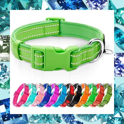azuza 反射犬の首輪、柔らかいクロロプレンゴム充填ペット首輪、IDマークリング付き、調節可能、子犬、グリーン、S