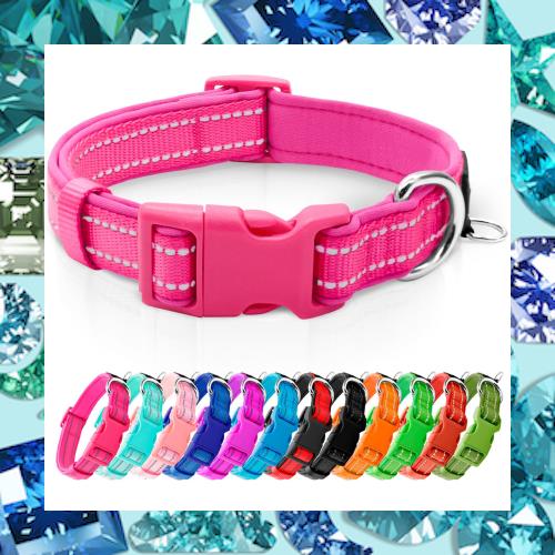 azuza 反射犬の首輪、柔らかいクロロプレンゴム充填ペット首輪、IDマークリング付き、調節可能、子犬、メイル赤色、S