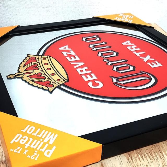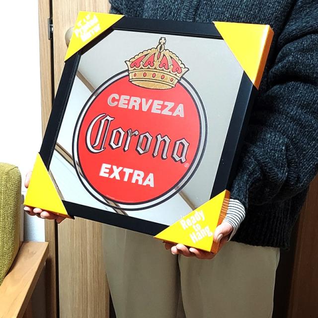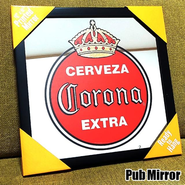 CORONAのビンテージ感漂うロゴがデザインされたおしゃれなパブミラーです。