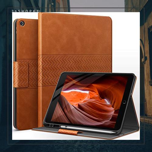 auaua iPad 第8世代ケース/iPad 第7世代ケース 鉛筆ホルダー付き ビーガンレザー 自動スリープ/ウェイク機能付き iPad 10.2インチ用 (ブラウン)