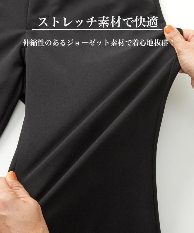 品質:ポリエステル97%・ポリウレタン3%(カットソー ジョーゼット) 透け感:なし 伸縮性:あり 生地の厚み:普通 光沢感:ややあり 裏地:無 ポケット:あり(ジャケット:左胸1・両腰 ボトムス:両サイド・後2) ウエスト:総ゴム+ベルトループ付き 季節:オールシーズン対応 シルエット:普通 原産国:中国製 備考:手洗い ※商品サイズは、仕上がりサイズです。