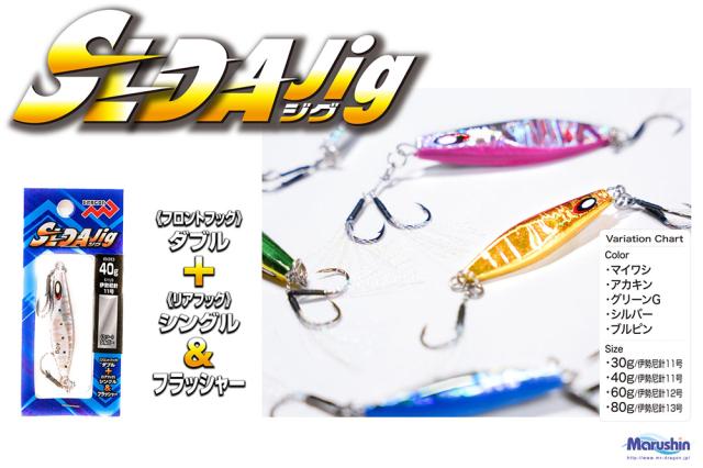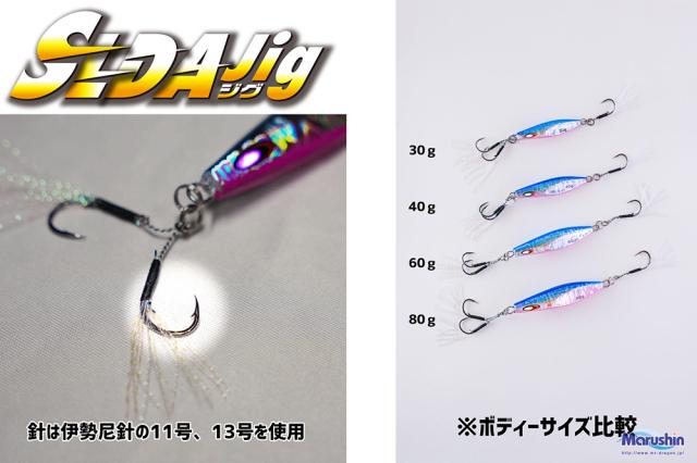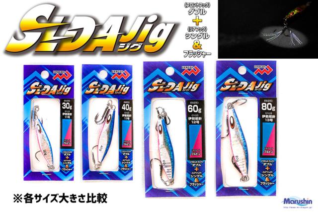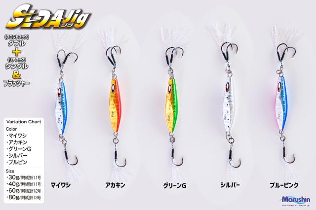 マルシン メタルジグ SLDA Jig 80g 伊勢尼針13号 ダブルフック シングルフック フラッシャー ハードルアー シーバス ルアー ソルトルアー ソルトウォーター ジギング オフショア スローシンキング マイワシ アカキン グリーンゴールド シルバー ブルピン