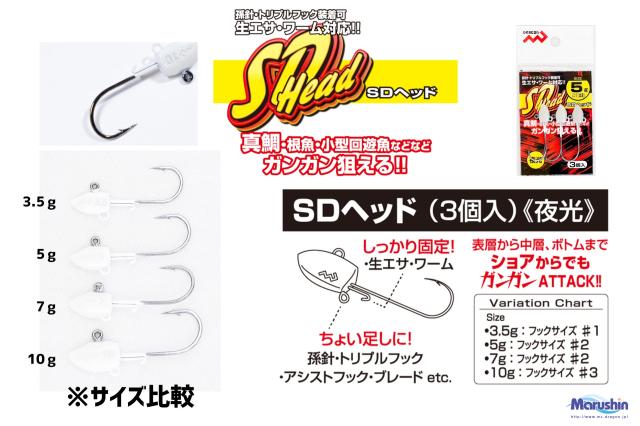 マルシン ジグヘッド SDヘッド 3個入 3.5g 5g 7g 10g 夜光 生エサ ワーム 刺し メバリング ソルトウォーター 海釣り ロックフィッシュ ハードロックフィッシュゲーム ルアー マダイ 根魚 メバル カサゴ アイナメ キジハタ クエ